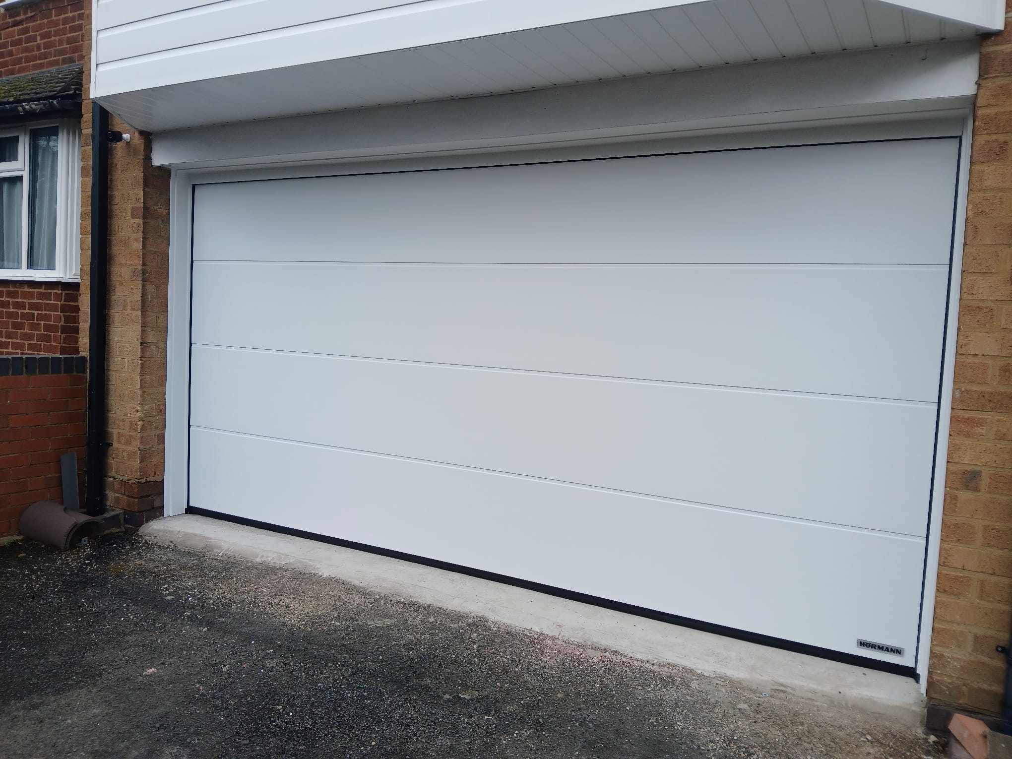 For this property in Northfield, Birmingham, we installed a Hörmann LPU42 insulated sectional garage door, finished in a white L ribbed design with a smooth planar surface for a clean and modern appearance.